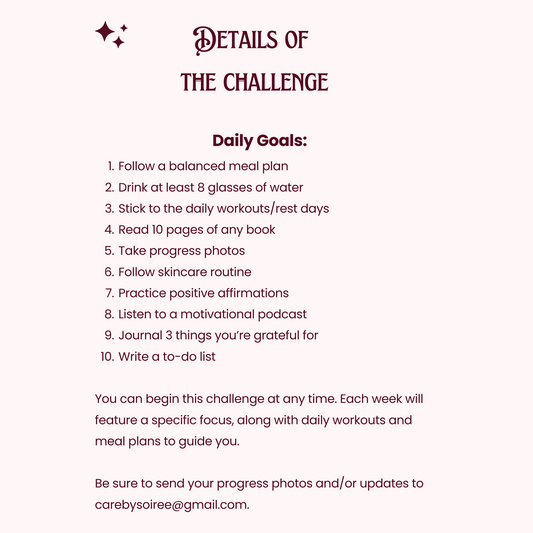 This challenge has been everything. It’s like 75 Hard but way more chill and realistic—perfect for anyone who wants to level up their routine without all the pressure. If I skipped a step, I didn’t feel guilty or stressed, I just kept going, and that made all the difference. Also, the creator? Literally the sweetest. You can tell she put so much thought into this, and it’s actually helped me feel more productive and put together. If you’re thinking about trying it, DO IT.